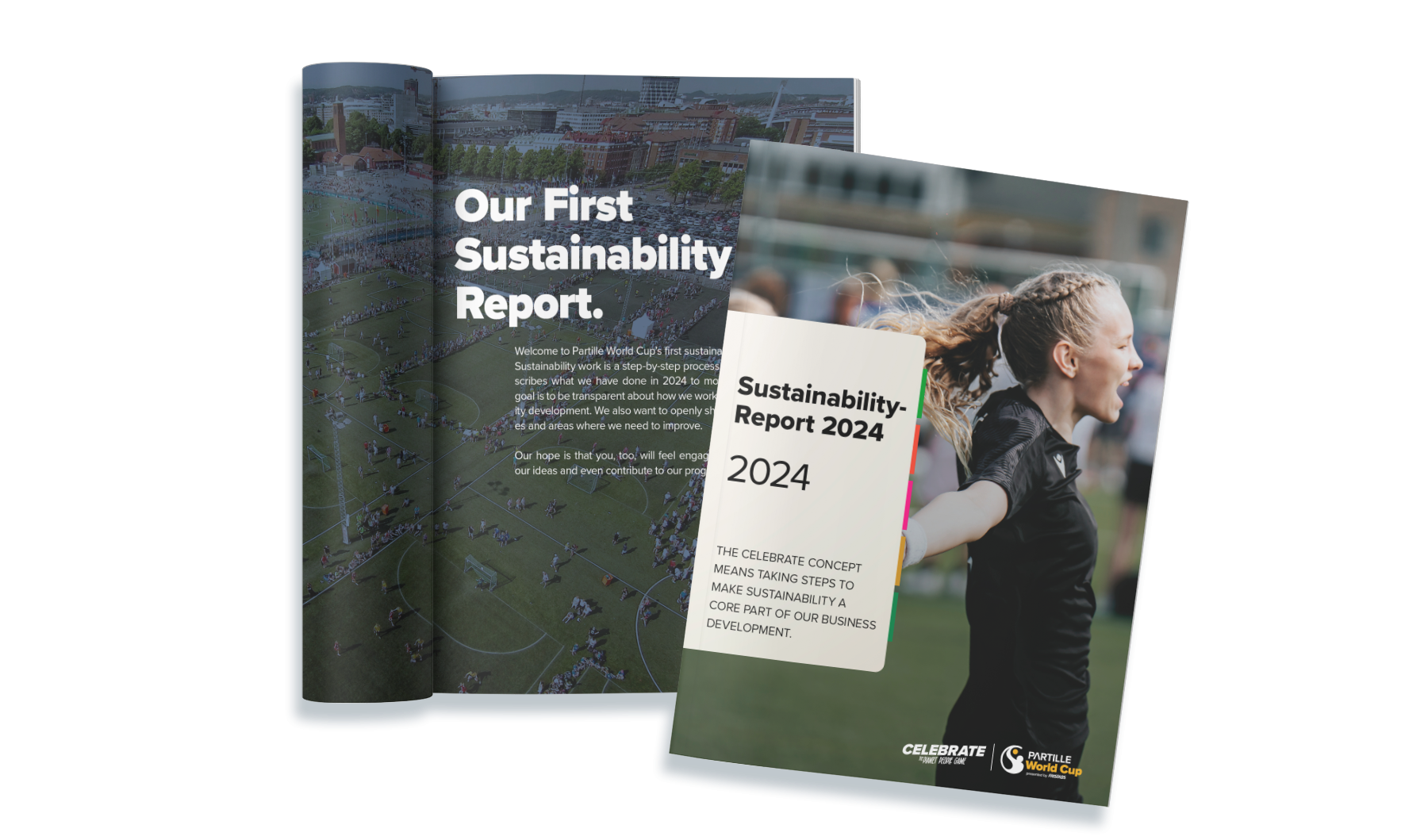 Partille World Cups's first sustainability report is here! Through our Celebrate initiative, we've reduced our climate impact and increased the positive experience for participants. Read about our progress, challenges, and how we can make Partille World Cup even more sustainable — together.