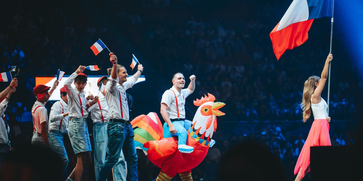 Avisorg from France won Best Costume 2025 during the Opening Ceremony at Scandinavium. Their mix of tradition, fashion and the tricolour stood out from hundreds of teams. – The costume represents French stereotypes, says Victoria Iraci.