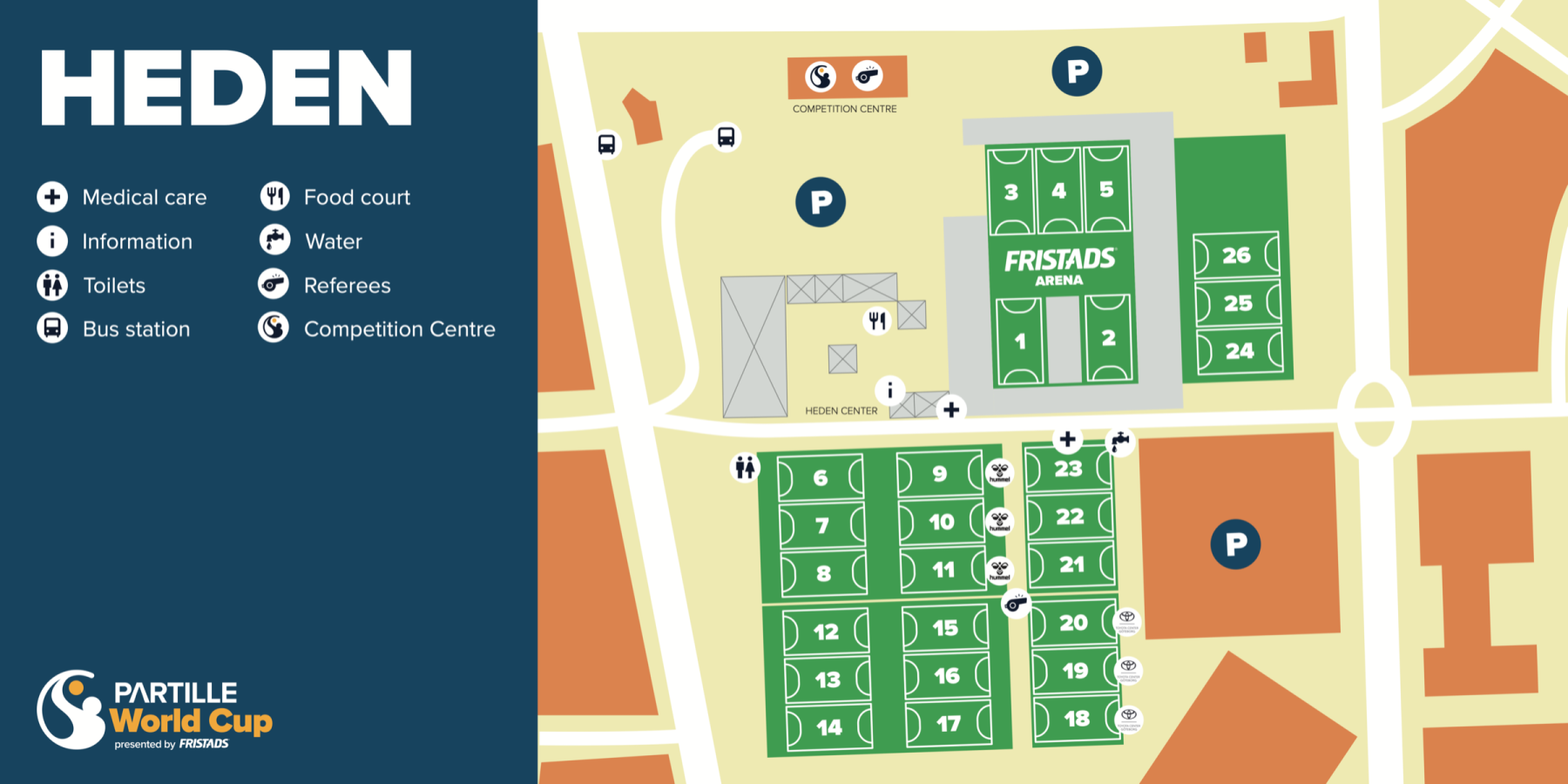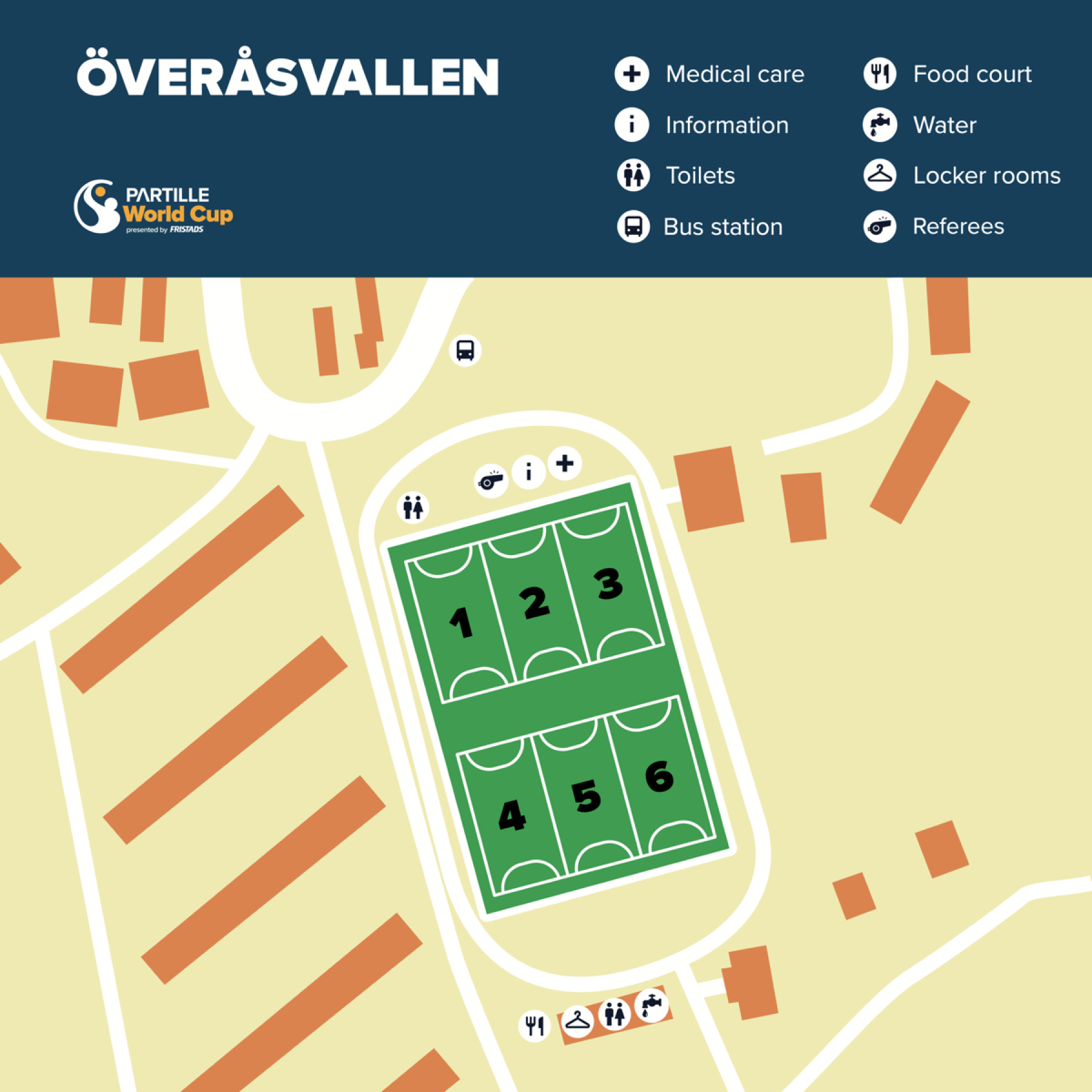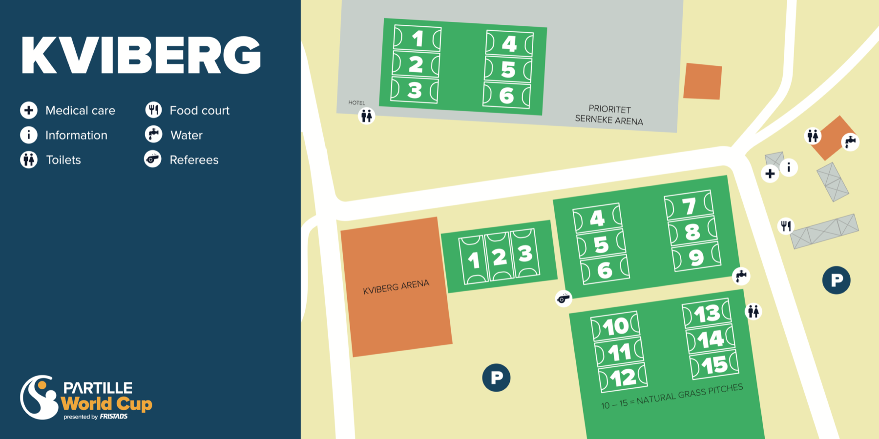 It is time to play, and we wish you the best of luck! Below you'll find a guide to find your playing field and the service we offer in connection to the area.