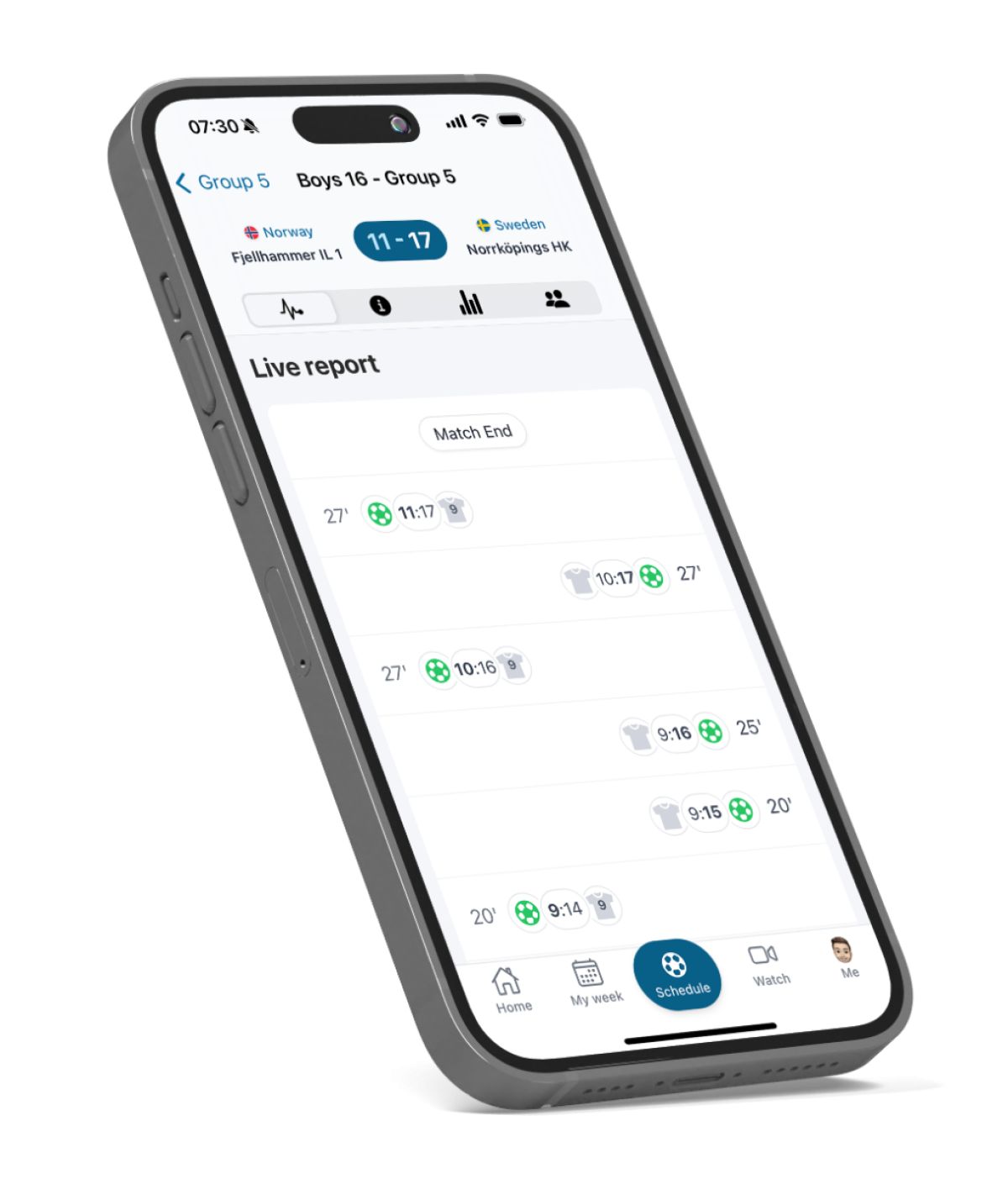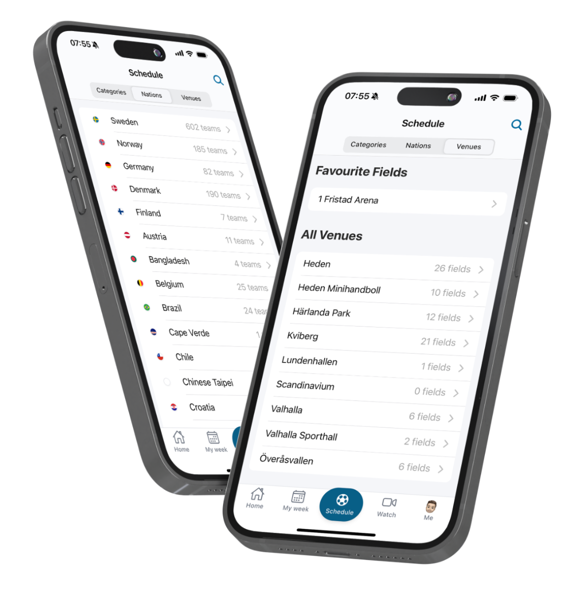 Looking for your team or a specific match? There are multiple ways of finding what you're looking for. Filter by age category, see all the teams from your nation, navigate to your favorite field or just search!