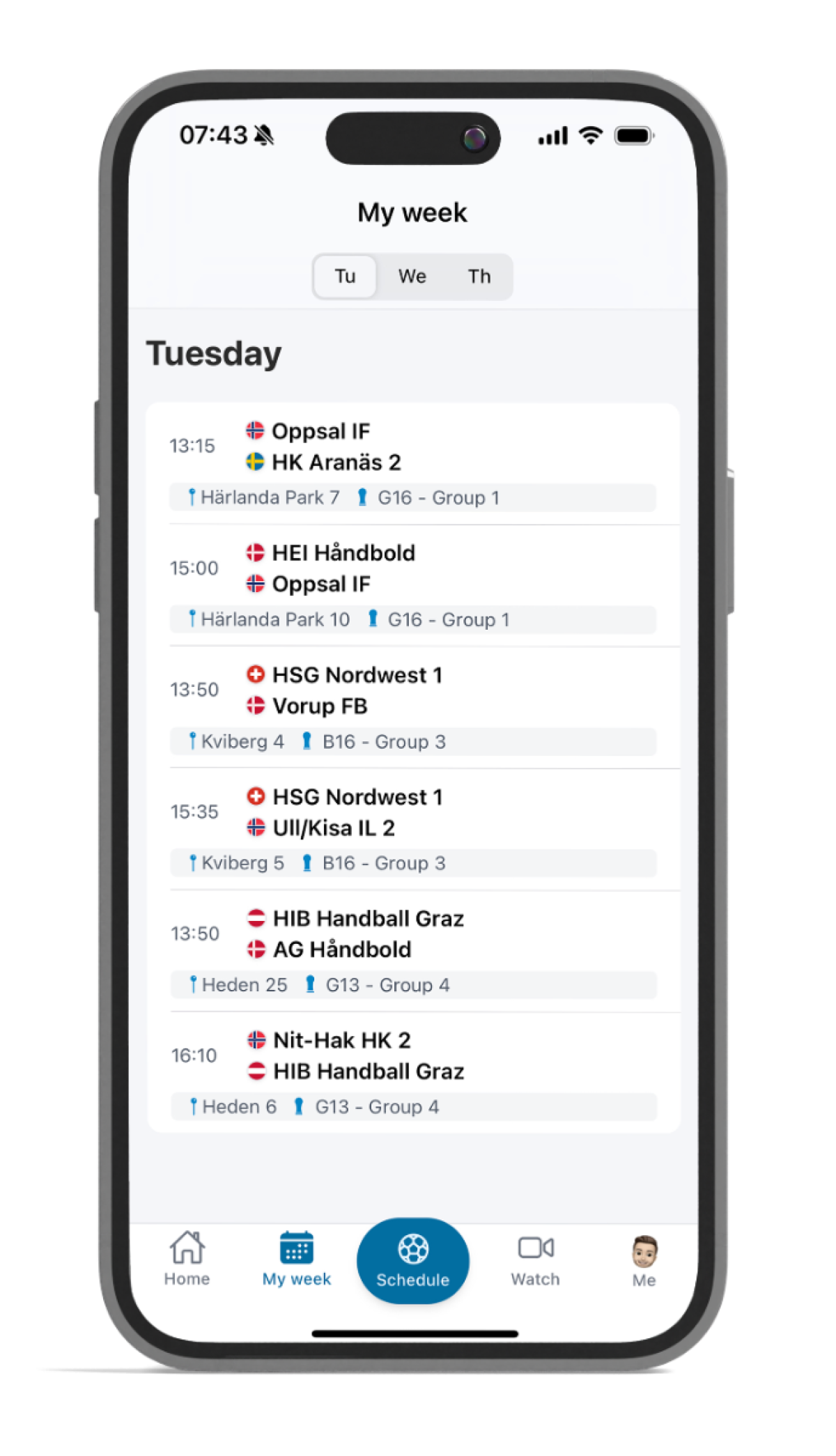 Follow your favorite teams and get a personalized schedule for only your teams matches. See them day by day and follow along in the action.
